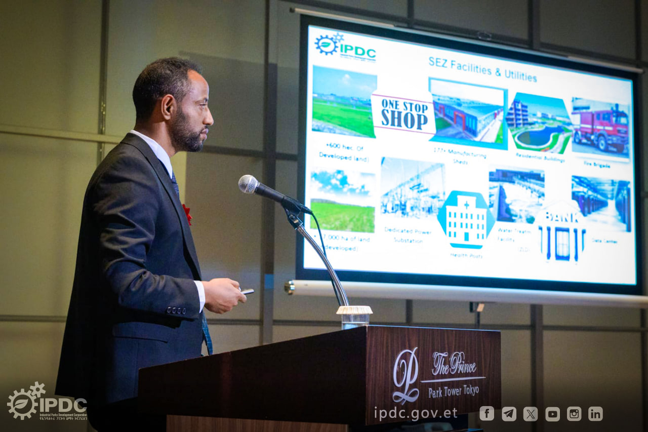 የኢንዱስትሪ ፓርኮች ልማት ኮርፖሬሽን በጃፓን ዋና ከተማ ቶኪዮ መካሄድ ላይ ባለው በ33ኛዉ ኤዢያ፤ አረብ እና አፍሪካ የኢንቨስትመንት ፎረም ላይ የኢትዮጵያ ልዩ ኢኮኖሚ ዞኖችን ጸጋ በማስተዋወቅ ላይ ይገኛል፡፡