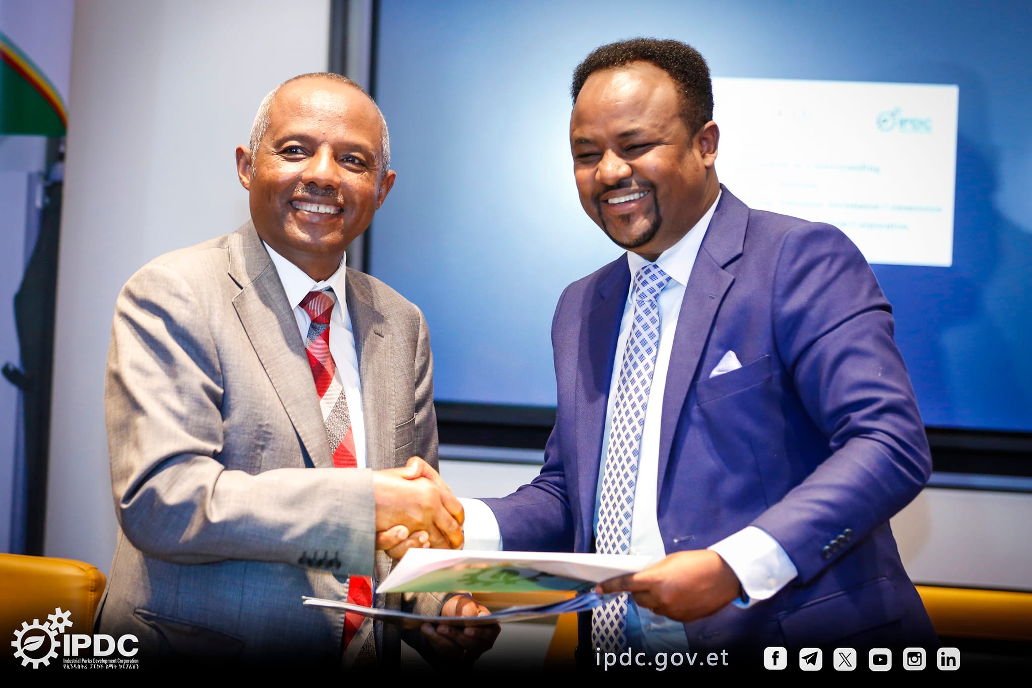 The signing ceremony was performed by the Ethiopian Airlines CEO, Mesfen Tassew, IPDC CEO Aklilu Tadesse and Investment Commission deputy commissioner Daniel Teressa.