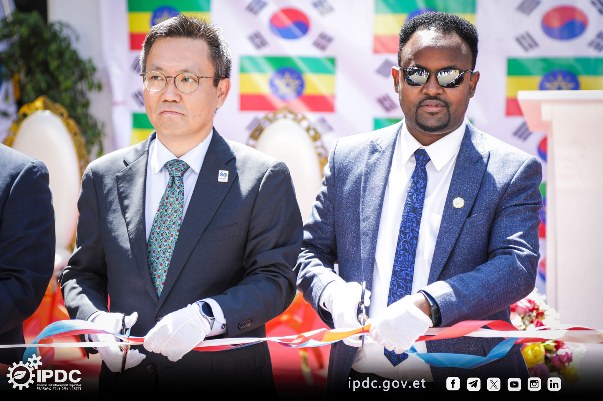 በኢትዮጵያ የደቡብ ኮሪያ አምባሳደር ካንግ ሴኪዮሄ እና የኢንዱስትሪ ፓርኮች ልማት ኮርፖሬሽን ዋና ስራ አስፈፃሚ አክሊሉ ታደሰ ፕሮጀክቱን መርቀው ከፍተዋል።