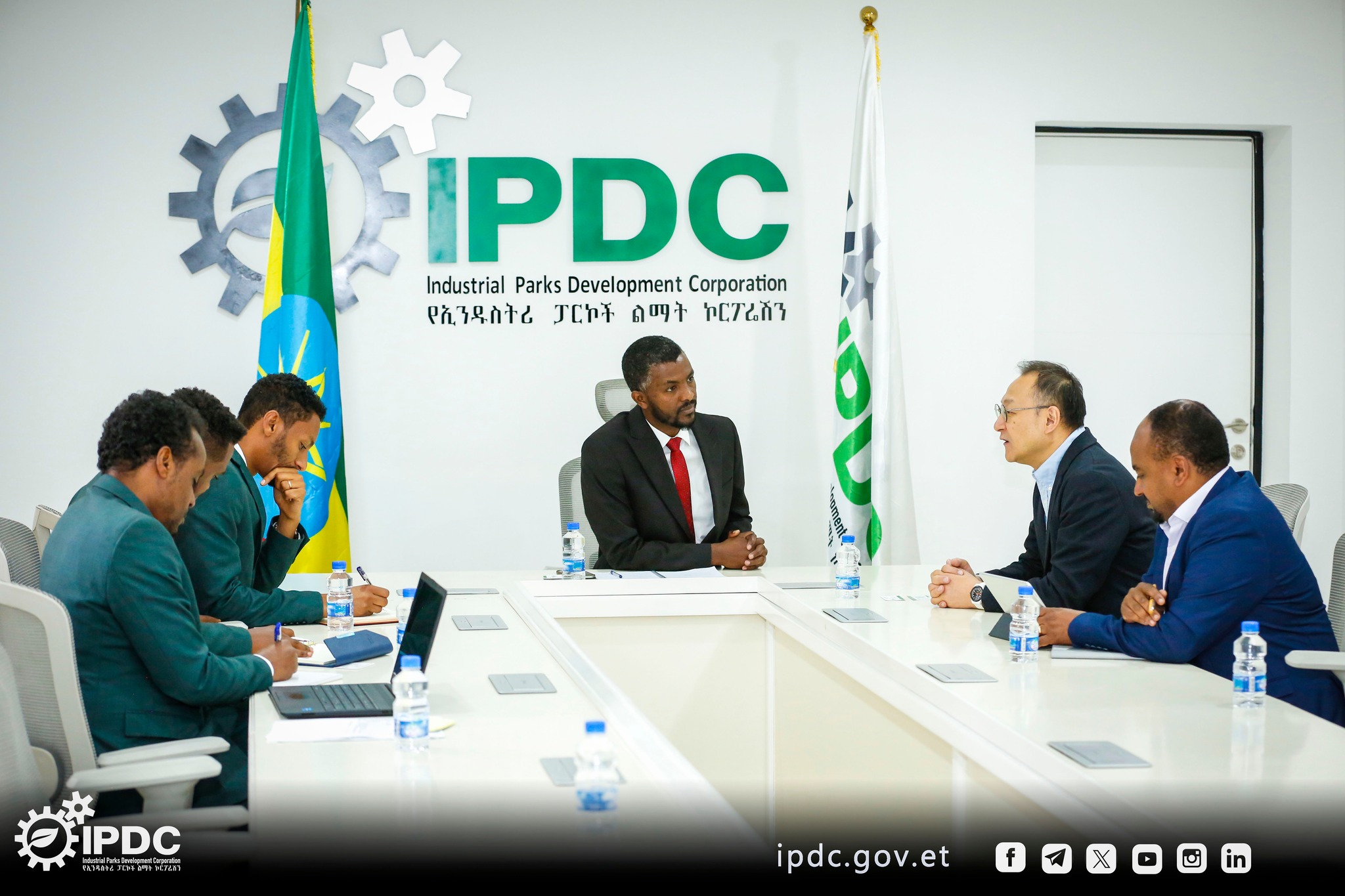 የኢንዱስትሪ ፓርኮች ልማት ኮርፖሬሽን የኢንቨስትመንት ፕሮሞሽንና ማርኬቲንግ ዘርፍ ምክትል ዋና ስራ አስፈፃሚ አቶ ዘመን ጁነዲን የኩባንያውን ስራ አስኪያጅ ሺግዮሺን በፅህፈት ቤታቸው ተቀብለው አነጋግረዋል።