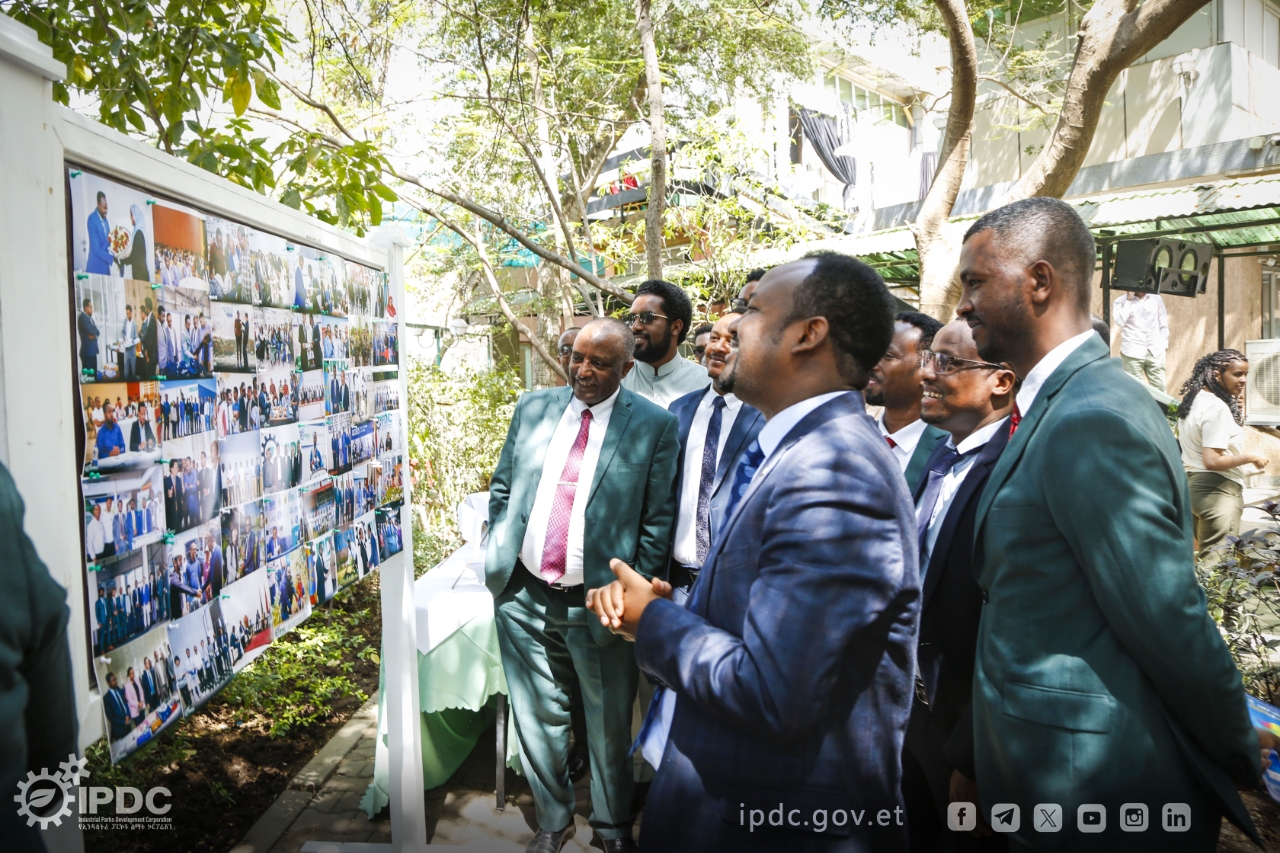 የኢንዱስትሪ ፓርኮች ልማት ኮርፖሬሽን በድሬዳዋ ካደረገው የእቅድ አፈፃፀም ግምገማ ጎን ለጎን በይፋ የተከፈተውና ባለፈው እንድ አመት የነበሩትን የኮርፖሬሽኑ አበይት ተግባራትና የስራ እንቅስቃሴዎችን የሚያሳየው የፎቶ አውደርዕይ