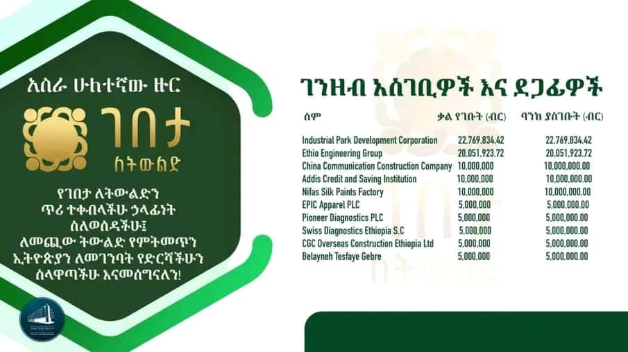 ኮርፖሬሽኑ ለ "ገበታ ለትውልድ" ከ22.7 ሚሊዮን ብር በላይ አስረከበ
